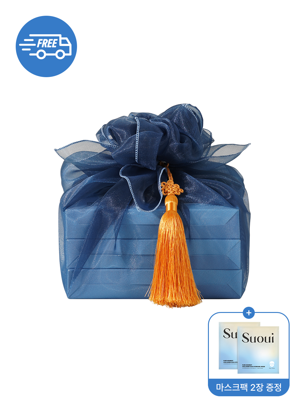 Ten wyjątkowy zestaw zawiera dwie paczki masek Suoui, każda zapakowana w tradycyjny koreański 보자기 (Bojagi), z eleganckim 노리개 (Norigae) i dopasowaną opaską na włosy, idealną na prezent. Dzięki inteligentnej technologii żelowej, która wspomaga zatrzymywanie wilgoci, maska zapewnia przyjemne uczucie ukojenia i chłodzenia po aplikacji. Wygładza widoczne drobne linie i zmarszczki oraz zawiera trawę tygrysią (CICA), aby łagodzić podrażnienia i kontrolować produkcję sebum. Kolagen w masce pomaga ujędrnić, unieść, nawilżyć i rozświetlić skórę, rewitalizując cerę.